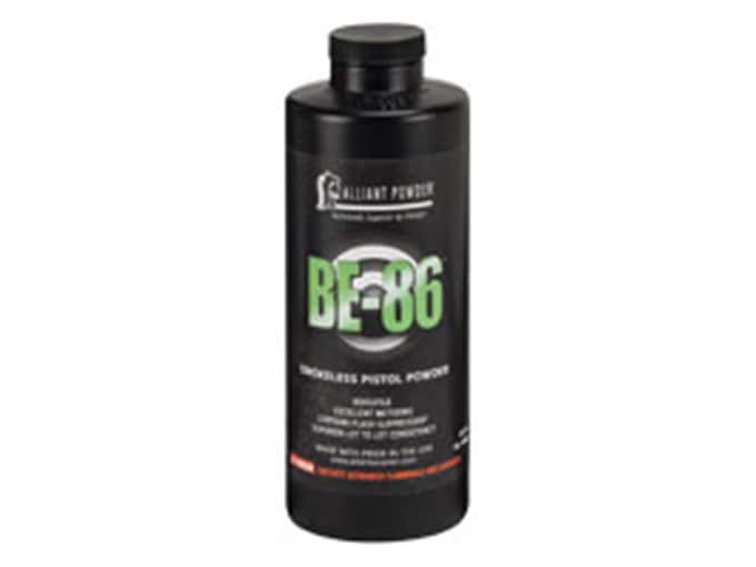 Every container of Alliant Smokeless Powder is backed by a century of manufacturing experience and the most exacting quality control procedures in the industry. Chemical composition, grain shape and size, and overall density are constantly checked and tested in a ballistics lab to ensure consistency. The special extruded flake formulation results in excellent ballistics in a wide array of centerfire pistol loads, with high energy, an ideal burn speed and less flash. It meters well and is available in 1- and 8-pound canisters. Like all Alliant Powder offerings, BE-86 provides superior lot-to-lot consistency.Warnings from the Manufacturer:Do not exceed the loads displayed in the reloaders guide.Never mix any two powders regardless of type, brand, or source.Never substitute any smokeless powder for Black Powder or any Black Powder substitute.FeaturesImproved flowContains flash suppressantHigh energyLot-to-lot consistencyVersatile