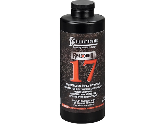 With a similar burn speed to IMR’s 4350 powder, Reloder 17 was designed for short magnum cases but can also be used in medium rifle loads. With Reloder 17 reloaders have a powder that meters easy and consistently while providing maximum velocity even in extreme weather. This consistent performance is what reloaders have come to expect from Alliant Powder – and Reloder 17 proves worthy.