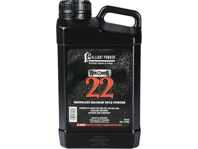 A top-performing big game rifle powder, the Reloder 22 is ideal for use with magnum rifle loads and for loading heavy bullets in standard rifle calibers. Reloder 22 has excellent metering qualities that make it both accurate and consistent in loading. All of this makes Reloder 22 the powder of choice for 270, 7mm magnum and .300 Win Mag.