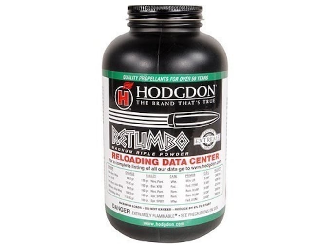 Hodgdon RETUMBO is a magnum powder was designed expressly for the really large overbored cartridges such as the 7mm Remington Ultra Magnum, 300 Remington Ultra Magnum, 30-378 Weatherby Magnum, etc. RETUMBO adds 40-100 fps more velocity to these cartridges when compared to other normal magnum powders. In addition, it is an Extreme Powder, making it perfect for big game hunting under all types of conditions.